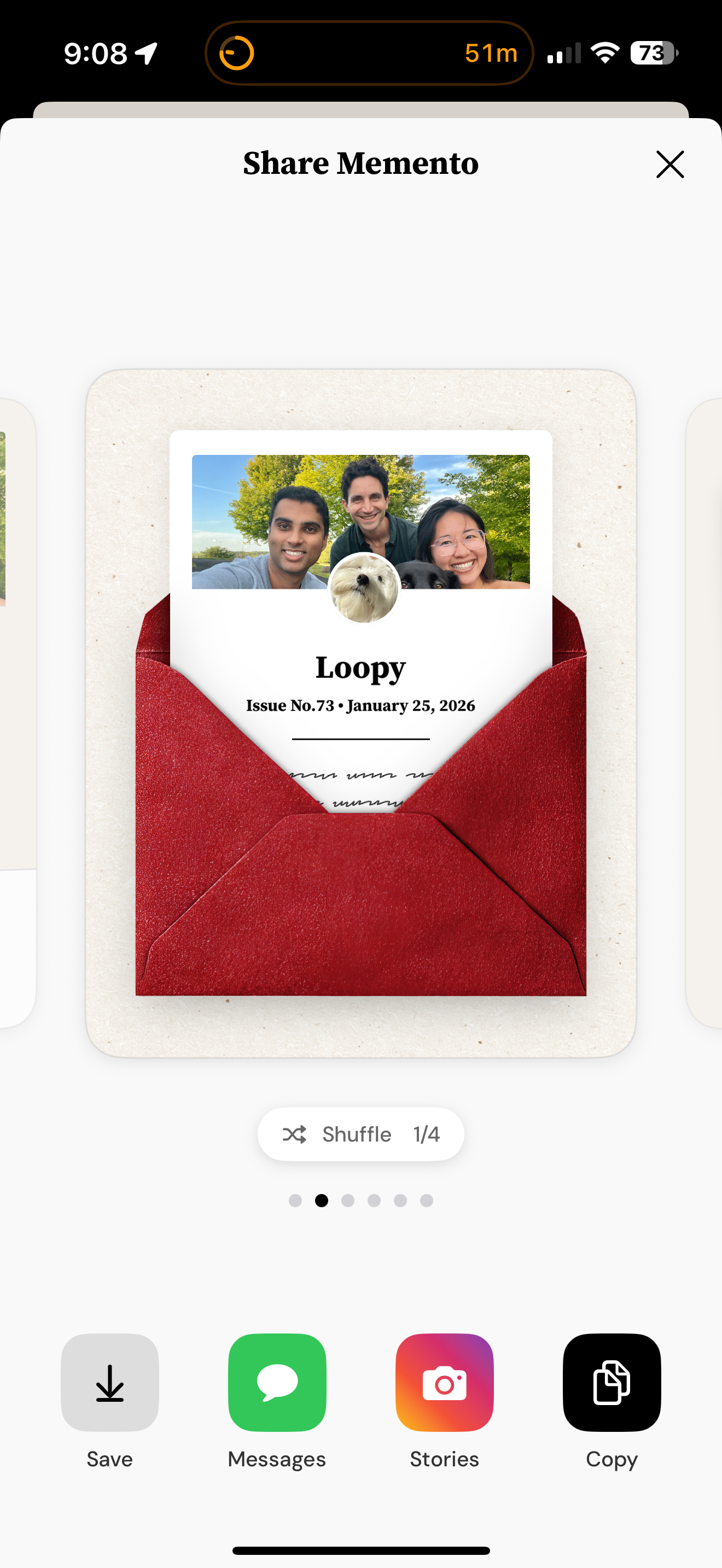 Mementos are an easy way to turn moments from your Letterloop into beautiful, shareable cards.
